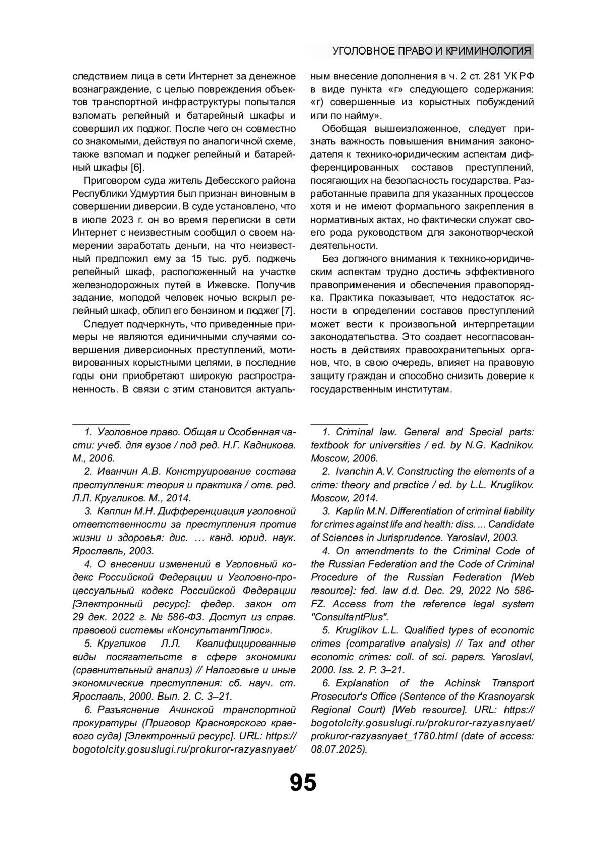 5. Кругликов Л.Л. Квалифицированные виды посягательств в сфере экономики (сравнительный анализ) // Налоговые и иные экономические преступления: сб. науч. ст. Ярославль, 2000. Вып. 2. С. 3-21.