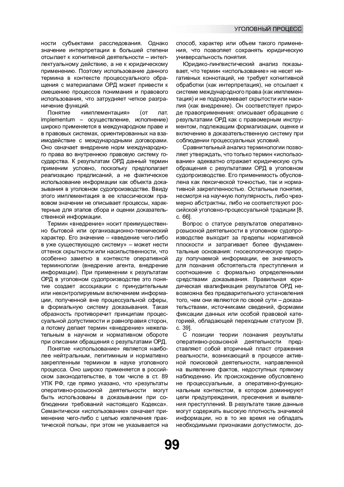 8. Закотянский А.С. Проблемы использования непроцессуальной информации в доказывании по уголовным делам. М., 2015. EDN: UIMRFR
