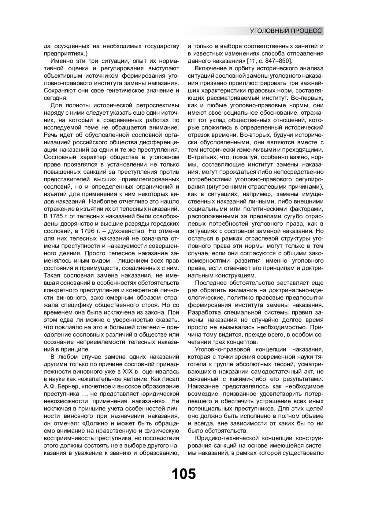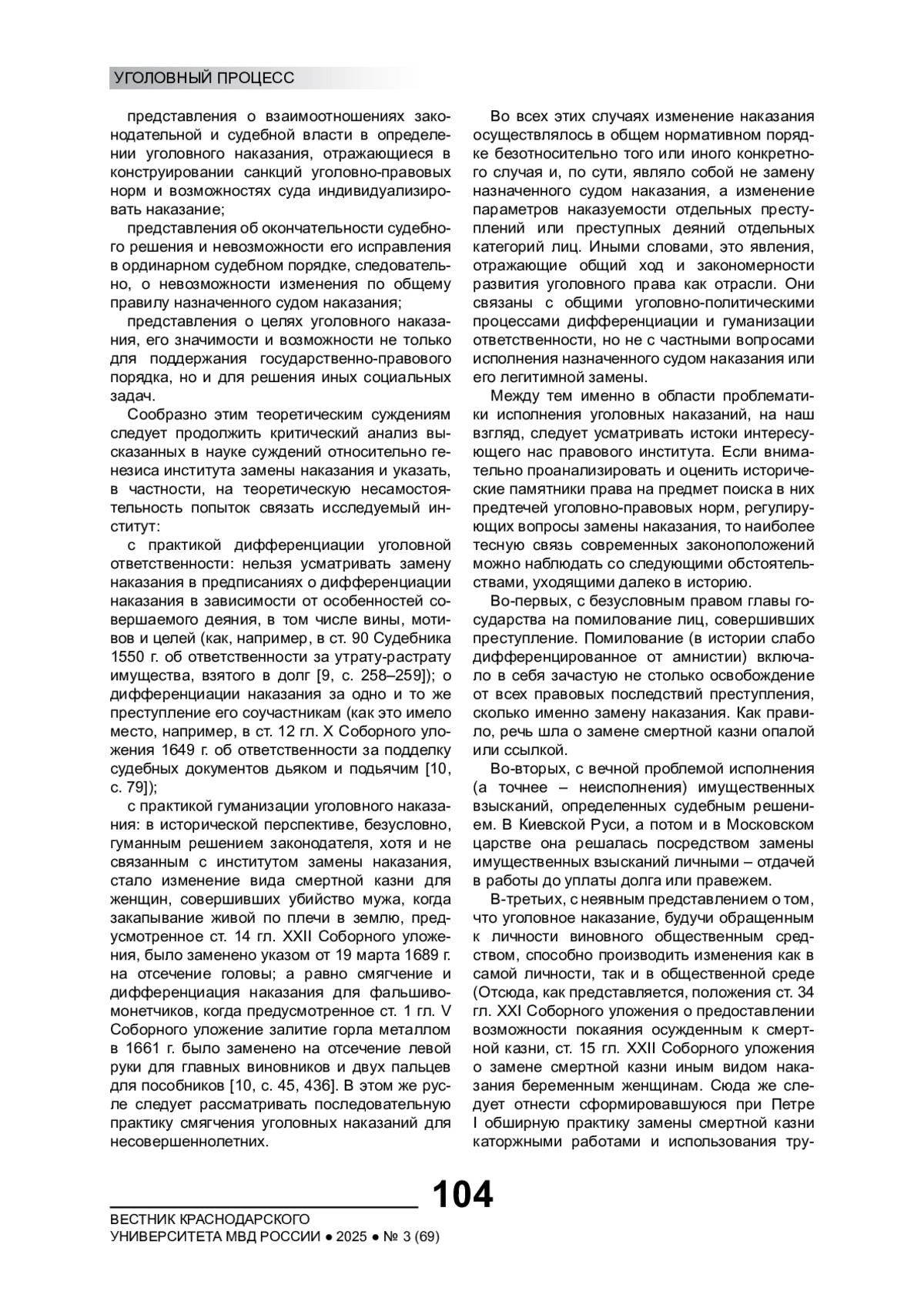 Историко-правовой метод давно вошел в арсенал уголовно-правовых исследований. Однако его реализация применительно к анализу отдельных уголовно-правовых институтов (в том числе института замены наказания) не отличается необходимой методологической точностью, а потому сопряжена с некоторыми ошибками, существенно искажающими понимание сущности данного института, его социальной основы и правовых функций