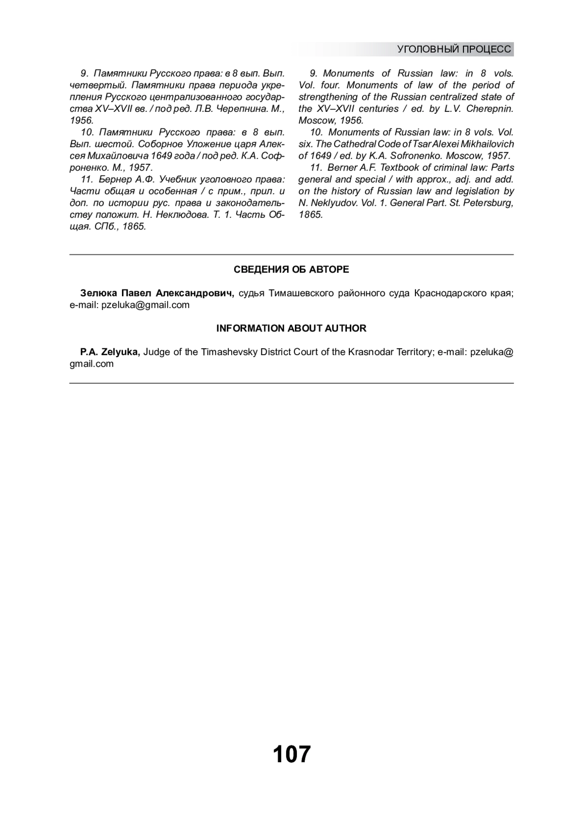 9. Памятники Русского права: в 8 вып. Вып. четвертый. Памятники права периода укрепления Русского централизованного государства XV-XVII вв. / под ред. Л.В. Черепнина. М., 1956.