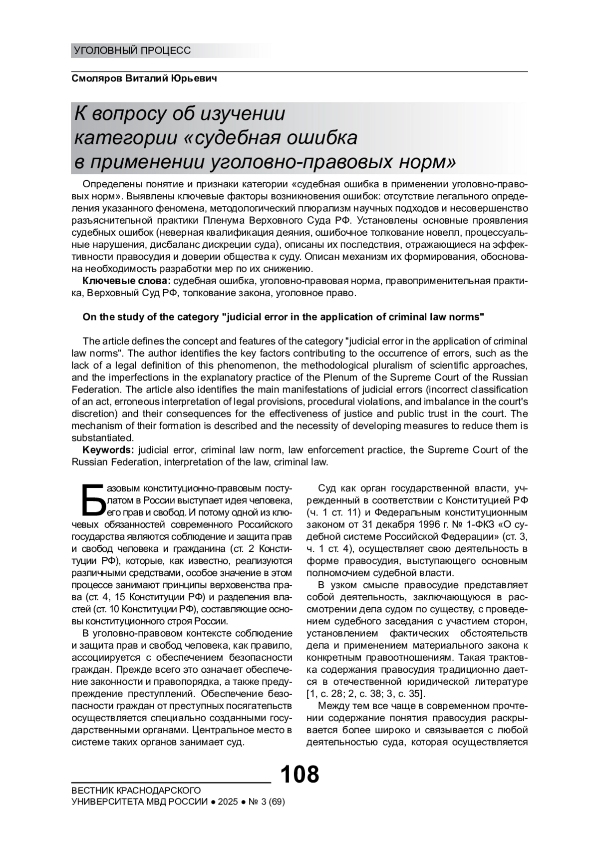 6. Лебедев В.М. Научные основы современной российской модели правосудия // Журнал российского права. 2023. № 5. EDN: SQLHZT