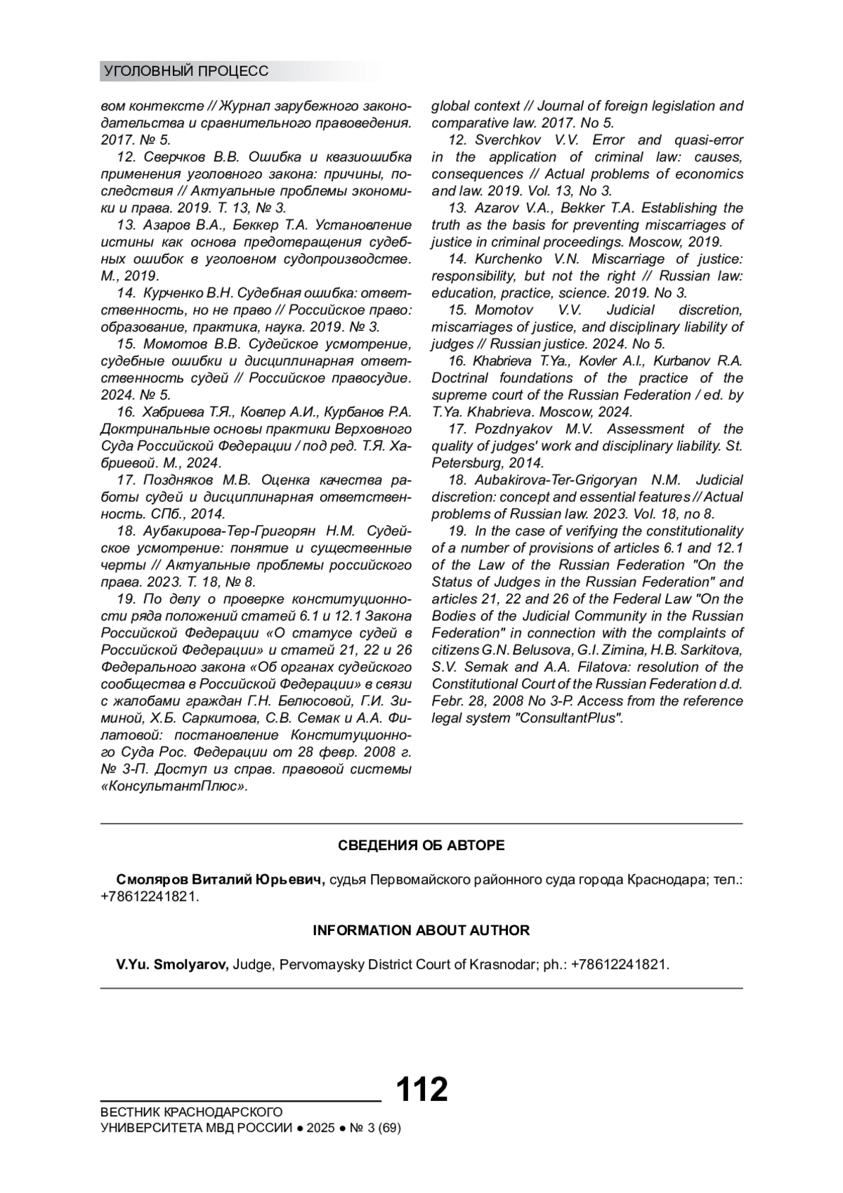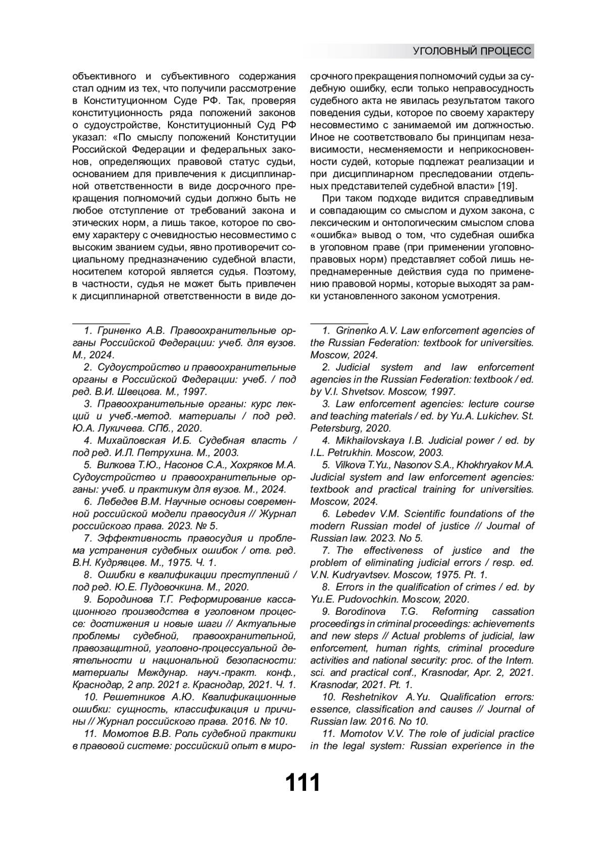 14. Курченко В.Н. Судебная ошибка: ответственность, но не право // Российское право: образование, практика, наука. 2019. № 3. EDN: XYNNIB