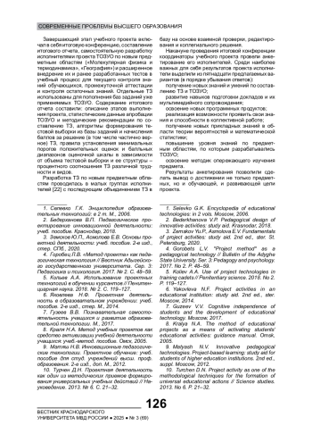 9. Матяш Н.В. Инновационные педагогические технологии. Проектное обучение: учеб. пособие для студ. учреждений высш. проф. образования. 2-е изд., доп. М., 2012. EDN: FXDIRJ