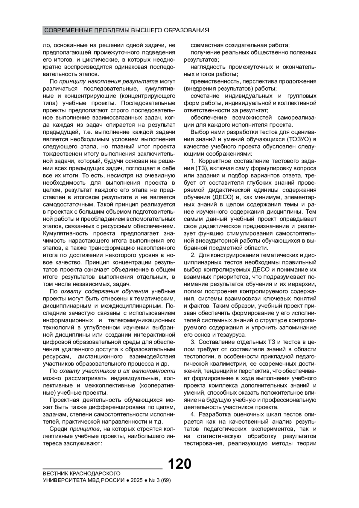 5. Кольев А.А. Использование проектных технологий в обучении курсантов // Пенитенциарная наука. 2018. № 2. С. 119-127. EDN: XRNYKD