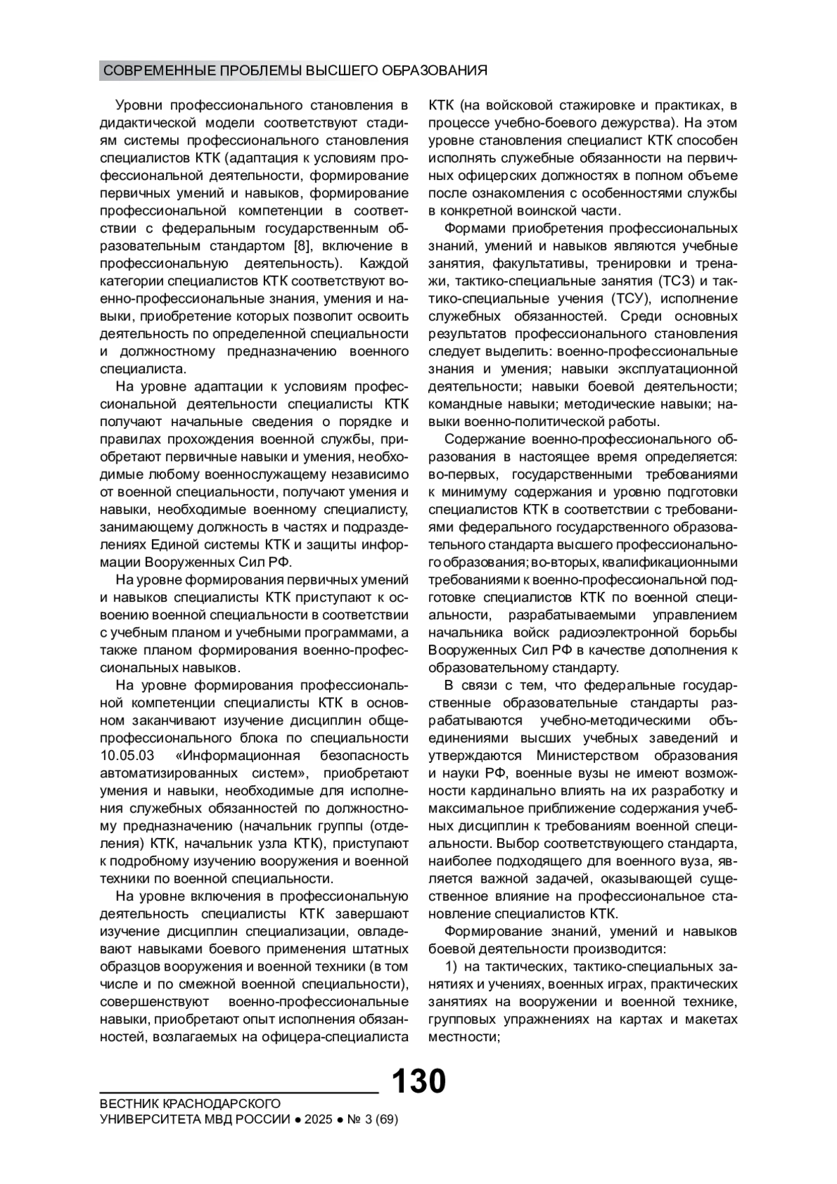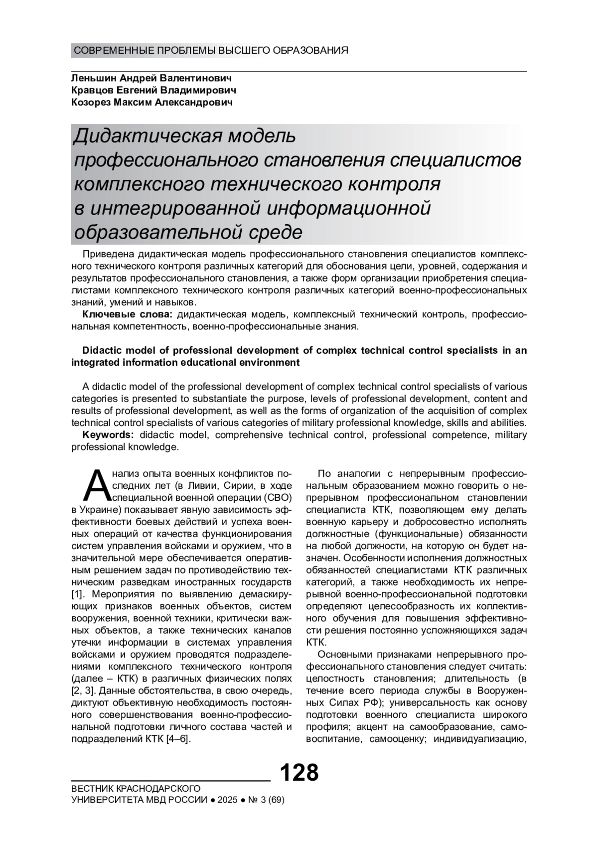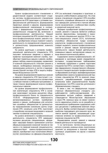 4. Зиброва Н.В., Леньшин А.В., Кравцов Е.В. Дидактические требования к уровню подготовки специалистов комплексного технического контроля // Вестник Краснодарского университета МВД России. 2018. № 2(40). EDN: XVQPXF