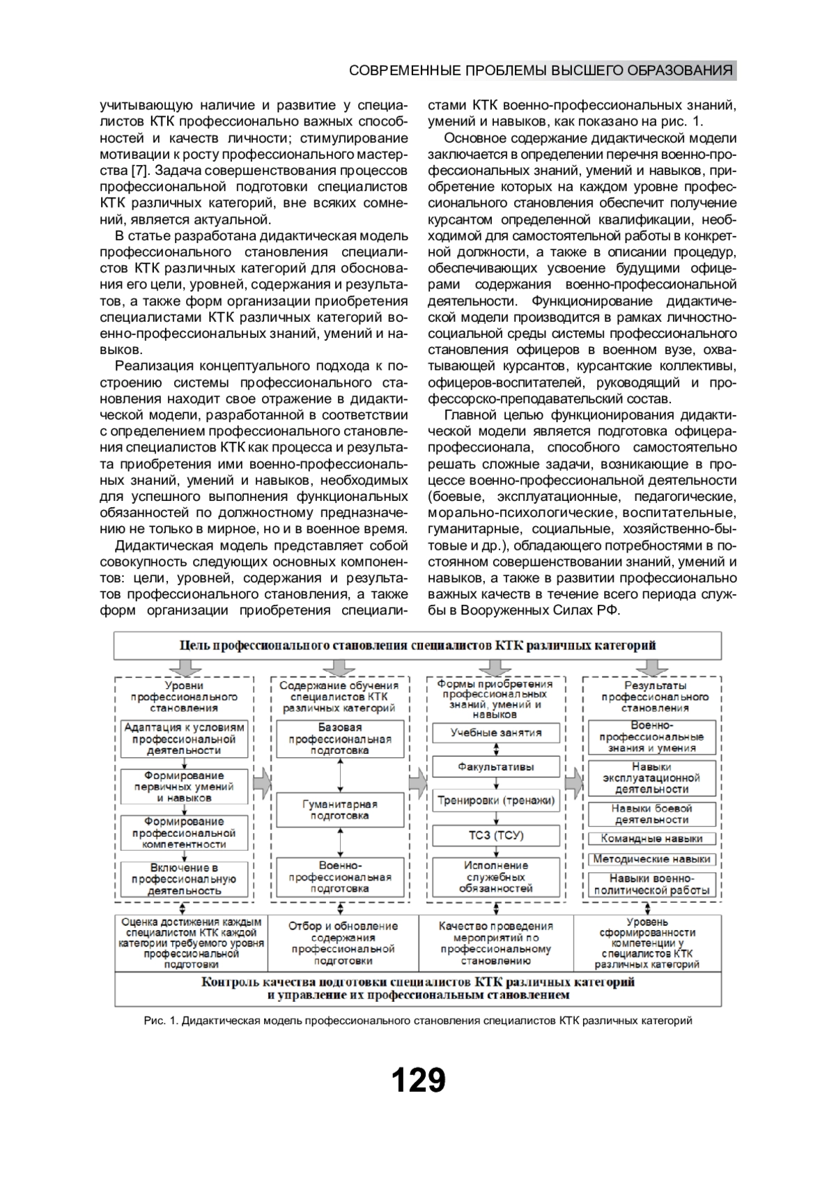 Приведена дидактическая модель профессионального становления специалистов комплексного технического контроля различных категорий для обоснования цели, уровней, содержания и результатов профессионального становления, а также форм организации приобретения специалистами комплексного технического контроля различных категорий военно-профессиональных знаний, умений и навыков