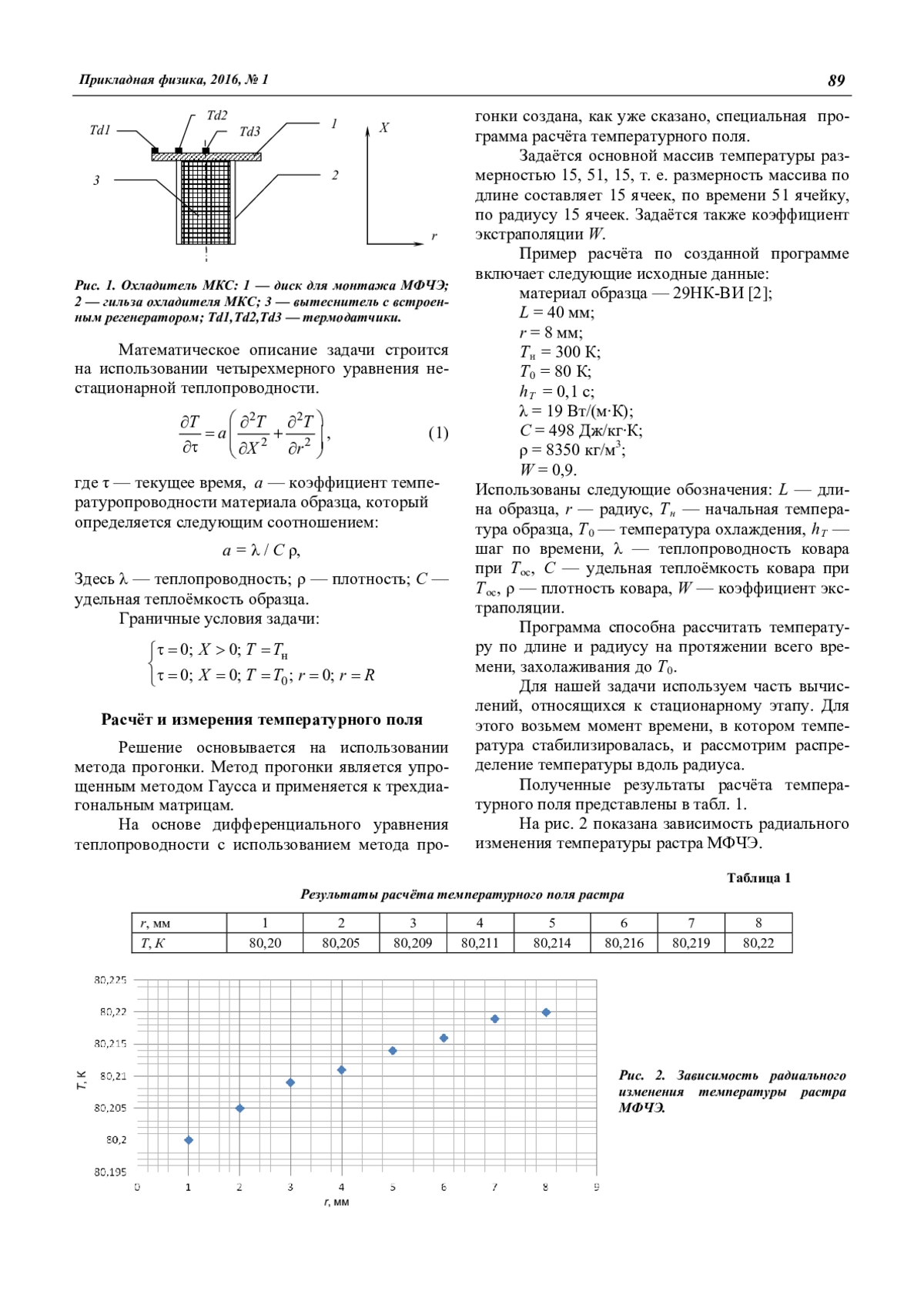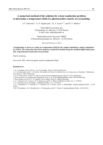 A. V. Samvelov, N. N. Oganesyan, D. A. Sysoev, and D. V. Minaev A numerical method of the solution for a heat conduction prob-lem to determine a temperature field of a photosensitive matrix at cryostatting 88