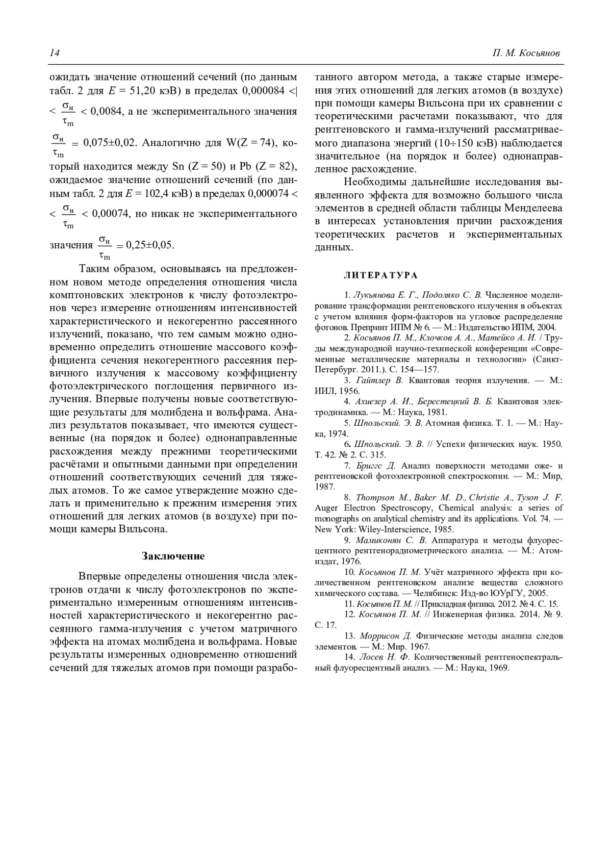 10. Косьянов П. М. Учёт матричного эффекта при количественном рентгеновском анализе вещества сложного химического состава. — Челябинск: Изд-во ЮУрГУ, 2005.
