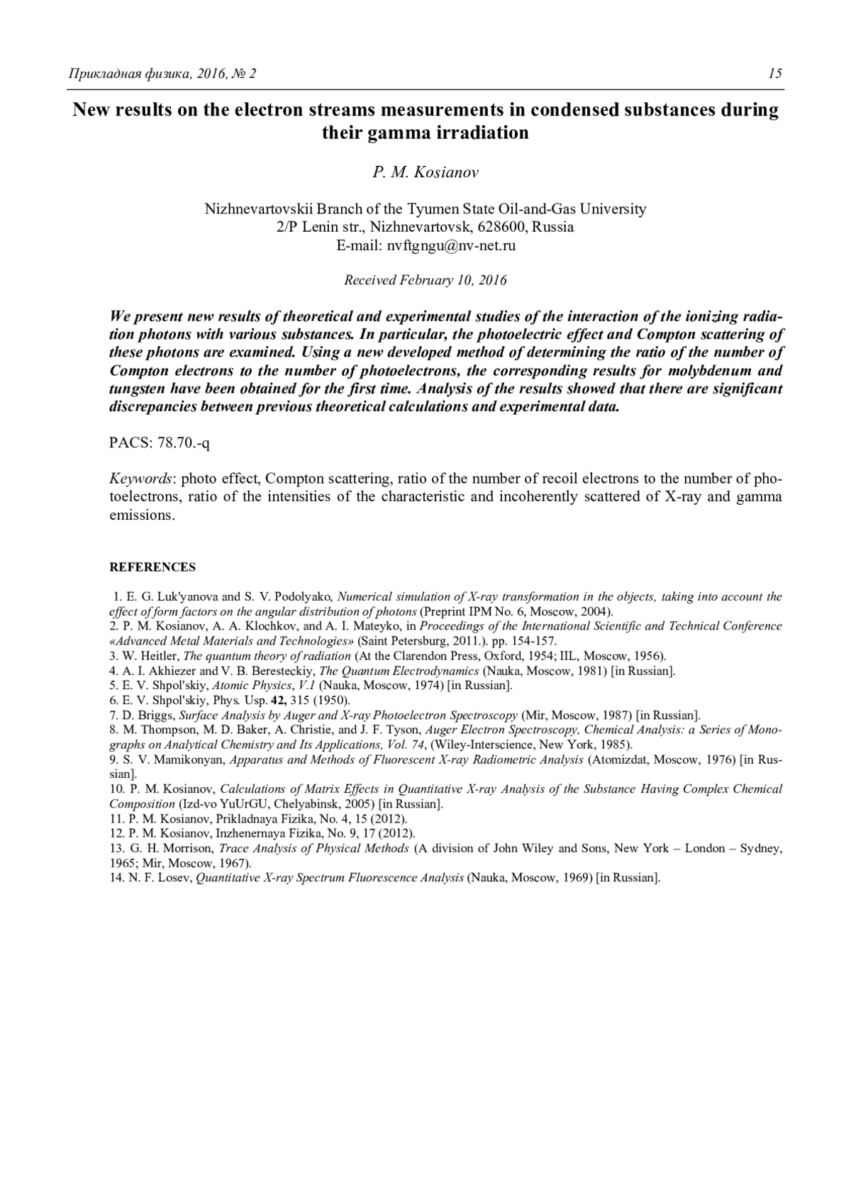11. Косьянов П. М. // Прикладная физика. 2012. № 4. С. 15.