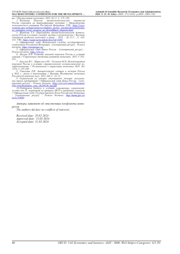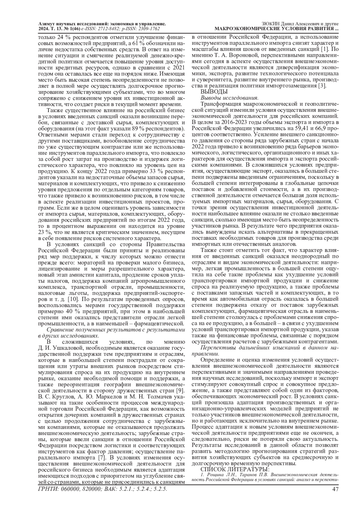 3. Воронова Т.А. Перестройка внешнеэкономической деятельности России в условиях санкций: вызовы и возможности // Вестник Алтайской академии экономики и права. - 2023. - № 12-3. - С. 410-414; URL: https://vaael.ru/ru/article/view?id=3188. EDN: QICIAL