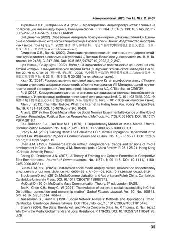 5. Смирнова О.В., Ван Ф. (2022). Эволюция профессионально-этических стандартов китайской журналистики в современных условиях // Вестник Волжского университета им. В. Н. Татищева. № 2 (38). С. 247-256. https://doi.org/10.51965/20767919_2022_2_2_247.