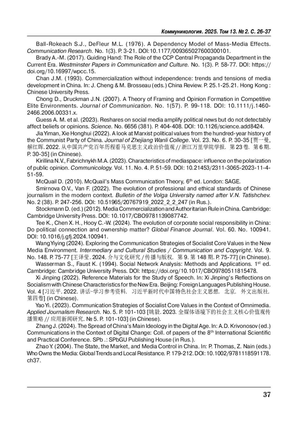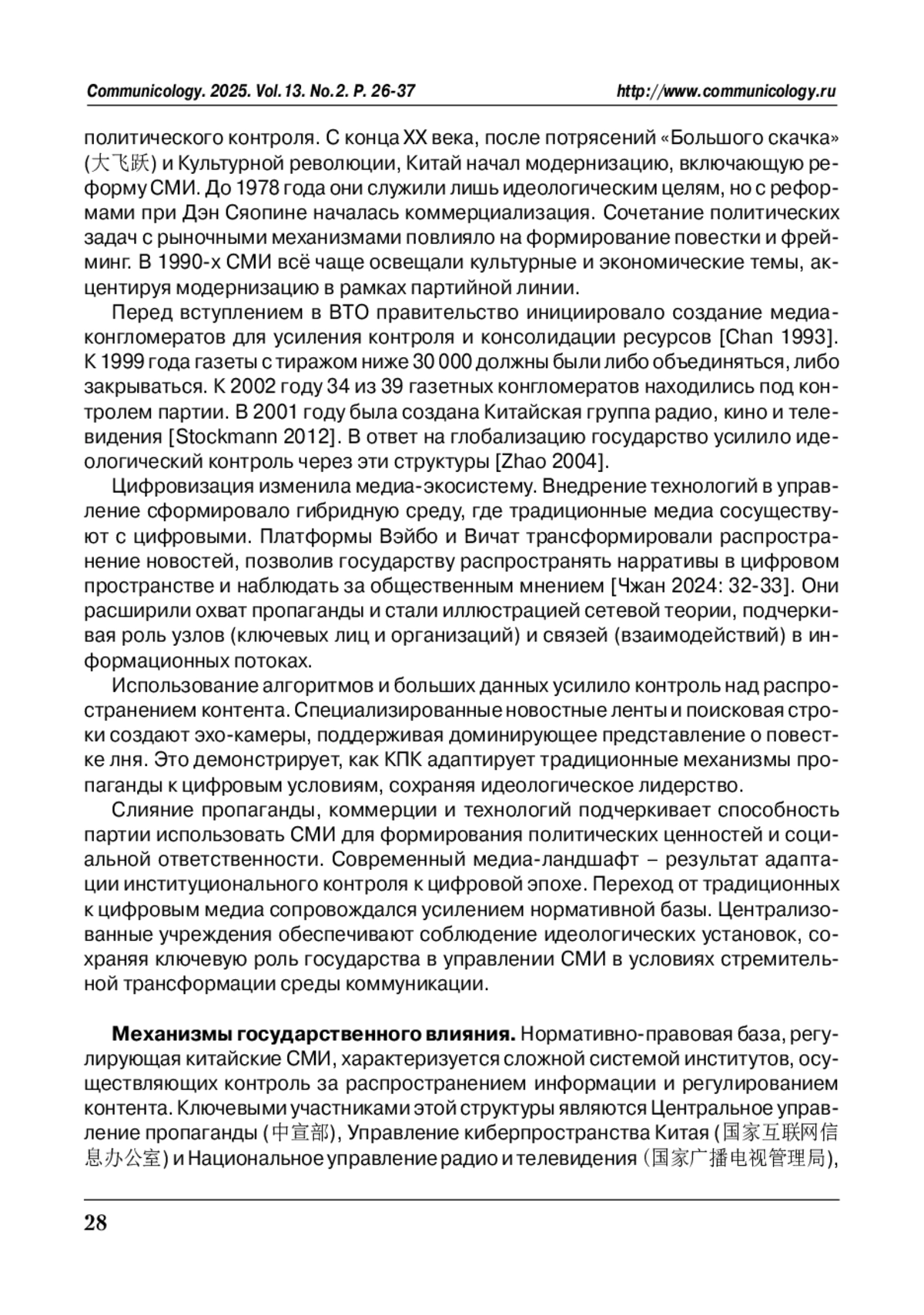 20. Zhao Y. (2004). The State, the Market, and Media Control in China. In: P. Thomas, Z. Nain (eds.) Who Owns the Media: Global Trends and Local Resistance. P. 179-212. https://doi.org/10.1002/9781118591178.ch37.