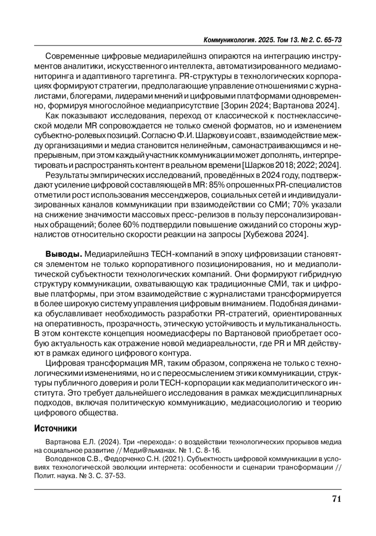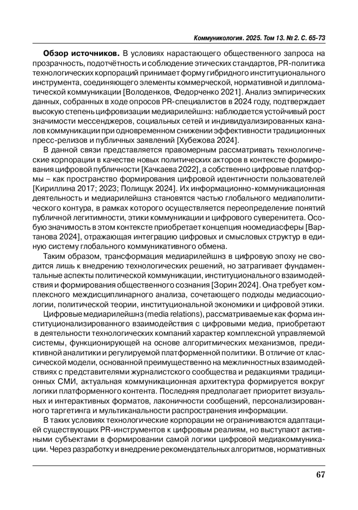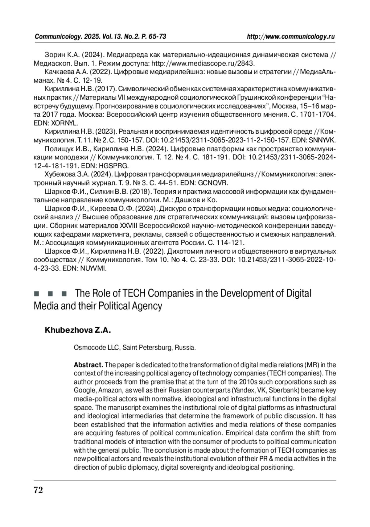 8. Хубежова З.А. (2024). Цифровая трансформация медиарилейшнз // Коммуникология: электронный научный журнал. Т. 9. № 3. С. 44-51. EDN: GCNQVR.