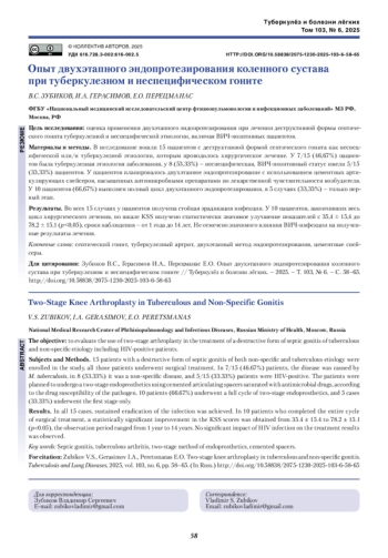 Цель исследования: оценка применения двухэтапного эндопротезирования при лечении деструктивной формы септического гонита туберкулезной и неспецифической этиологии, включая ВИЧ-позитивных пациентов.
