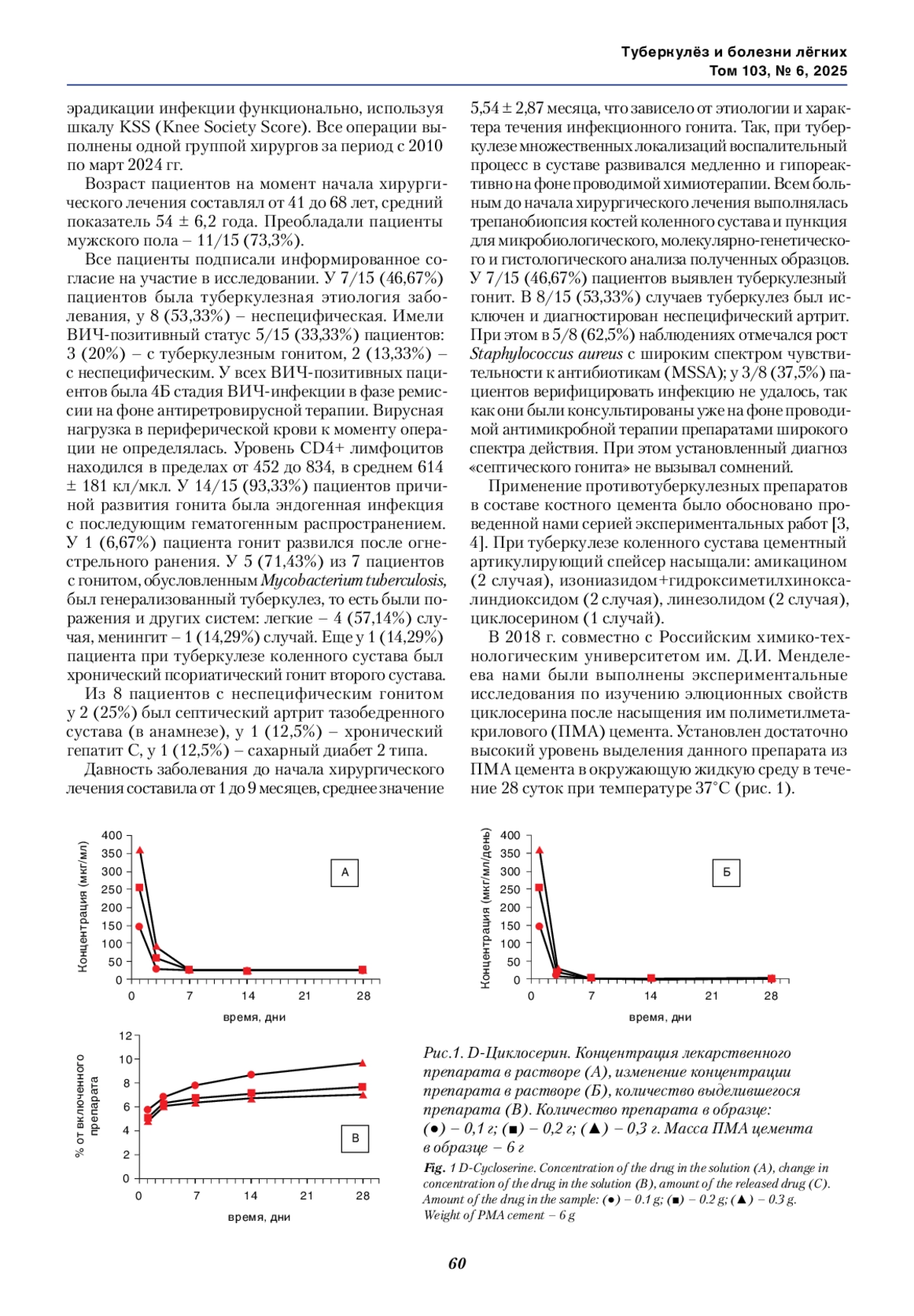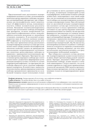 3. Перецманас Е.О., Герасимов И.А., Зубиков В.С., Есин И.В. Применение антимикробных препаратов, обладающих противотуберкулезной активностью, в составе костного цемента // Туберкулез и болезни легких. - 2021. - Т. 99, № 9. - С. 53-55.