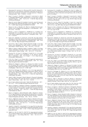 21. Samade R., Voskuil R.T., Scharschmidt T.J. Two-stage TKA for tuberculosis septic arthritis of the knee masquerading as pigmented villonodular synovitis: A case report // Knee. -2022. - № 38. - Р. 30-35. DOI: 10.1016/j.knee.2022.07.003