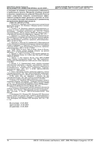 Цель модели - определить наилучшее распределение средств между проектами, учитывая такие критерии, как стоимость, приоритет, прибыль, риск и срок окупаемости, подстраиваясь под изменения рыночной ситуации, и способствуя активной адаптации к макроэкономическим трендам. Алгоритм моделирования включает задание критериев каждого проекта, составление целевой функции, формулирование ограничений модели, решение задачи линейного программирования и оценку показателей модели. Подчеркивается важность моделирования при принятии инвестиционных решений и отмечается возможность использования модуля квантования для определения рисков проектов. Разработан индекс, позволяющий оценить степень, в которой проекты соответствуют целям устойчивого развития. Приведен пример применения этой модели для инвестиционных проектов, результаты которого представляют научную новизну в выборе критериев, ограничений и моделирования. Разработанная модель может быть полезна для принятия решений по распределению финансовых ресурсов в коммерческих проектах.