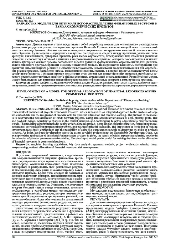 Данная научная статья представляет собой разработку модели для оптимального распределения финансовых ресурсов в рамках коммерческих проектов Иннохаба Росатом, в основе которой лежит комплексный подход к анализу больших объемов данных и интеграции современных инструментов квантовой оценки и машинного обучения.