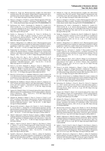 47. Tarazjani A.D., Jouabadi S.M., Jouabadi S.M., Naderi E., Sturkenboom M., Ahmadizar F. Genetic polymorphism and risk of anti-tuberculosis drug-induced liver injury (AT-DILI): a systematic review and meta-analysis. 2025. Available at: https://www.medrxiv.org/collection/pharmacology-andtherapeutics?page=2.