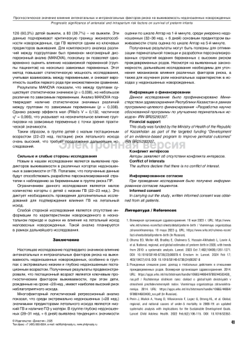 14. Божбанбаева НС, Урстемова КК, Тарабаева АС, Битанова ЭЖ, Абильбаева АА, Сулейменова ИЕ. Прогностические критерии преждевременных родов у беременных, перенесших COVID-19 в третьем триместре: исследование случай-контроль. Вопросы гинекологии, акушерства и перинатологии. 2024; 23(3):39-47. DOI: 10.20953/1726-1678-2024-3-39-47