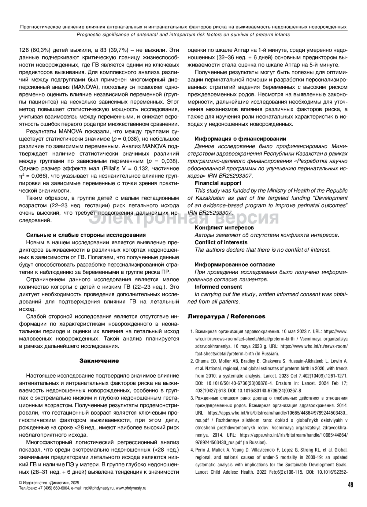 1. Всемирная организация здравоохранения. 10 мая 2023 г. URL: https://www.who.int/ru/news-room/fact-sheets/detail/preterm-birth.