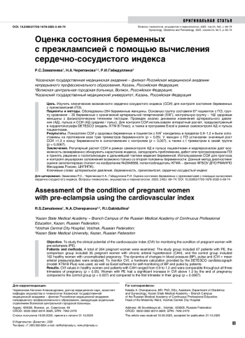 Цель. Изучить клинические возможности сердечно-сосудистого индекса (ССИ) для контроля состояния беременных с преэклампсией (ПЭ).