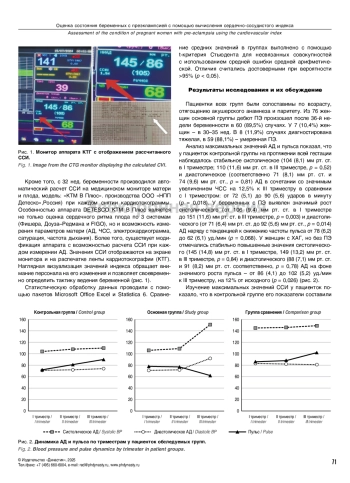 Пациенты и методы. Обследованы 264 беременные женщины. Основную группу составили 67 пациенток с ПЭ, группу сравнения – 35 беременных с хронической артериальной гипертензией (ХАГ), контрольную группу – 162 здоровые женщины с физиологическим течением гестации. Проведен анализ динамики изменений артериального давления (АД), пульса и ССИ (АД среднее / пульс). Для контроля ССИ использовали аппаратный расчет, предусмотренный в кардиотокографе DETESCO (модель: КТМ В Плюс), а также в программе Excel в рамках самоконтроля АД и пульса пациентками.