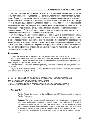 В статье раскрыты основные положения формирования и развития межкультурных и этноконфессиональных коммуникаций в медиапространстве. Рассмотрено межкультурное взаимодействие в контексте институциональных изменений. Определена роль религиозных некоммерческих организаций в информационном пространстве России и медиакоммуникаций в предотвращении этнорелигиозных конфликтов. Особое внимание уделено обоснованию различных идентичностей в пространстве культуры: культурная, этническая, национальная, религиозная, гражданская.