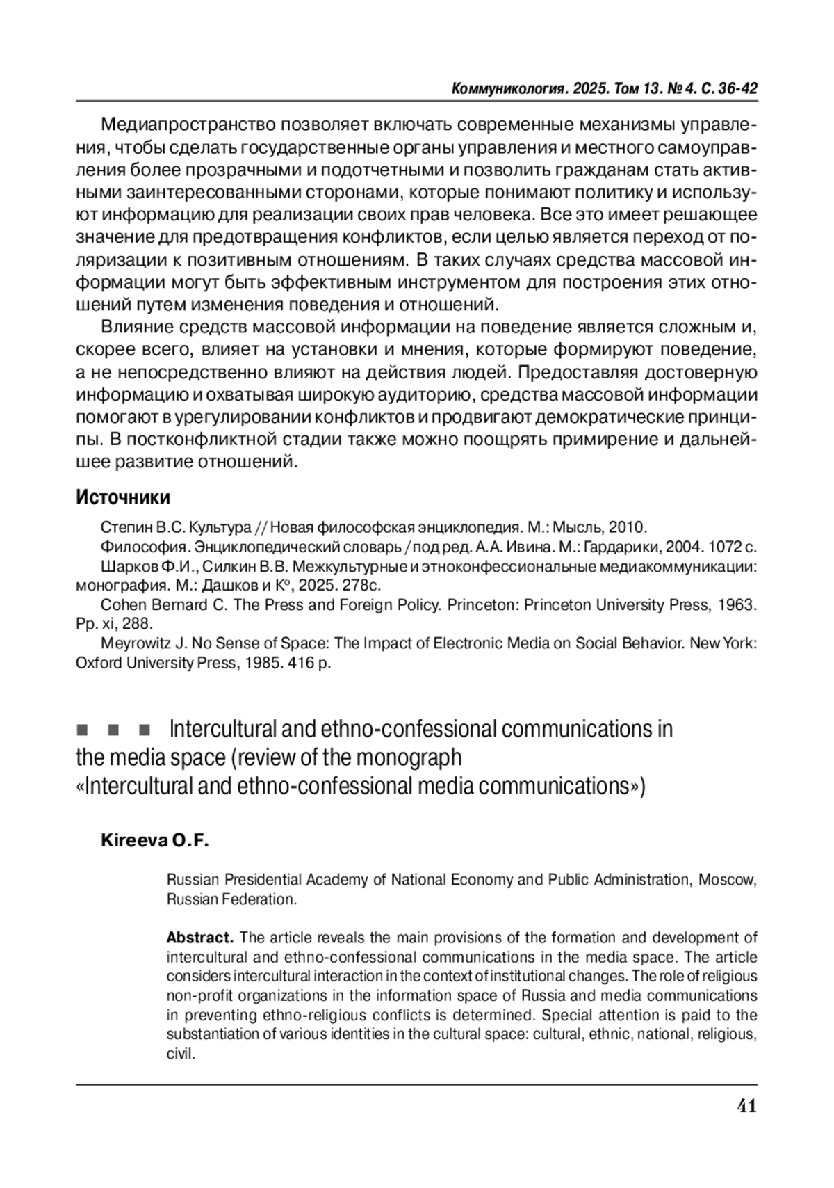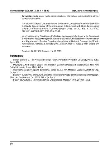 3. Шарков Ф.И., Силкин В.В. Межкультурные и этноконфессиональные медиакоммуникации: монография. М.: Дашков и Ко, 2025. 278с.