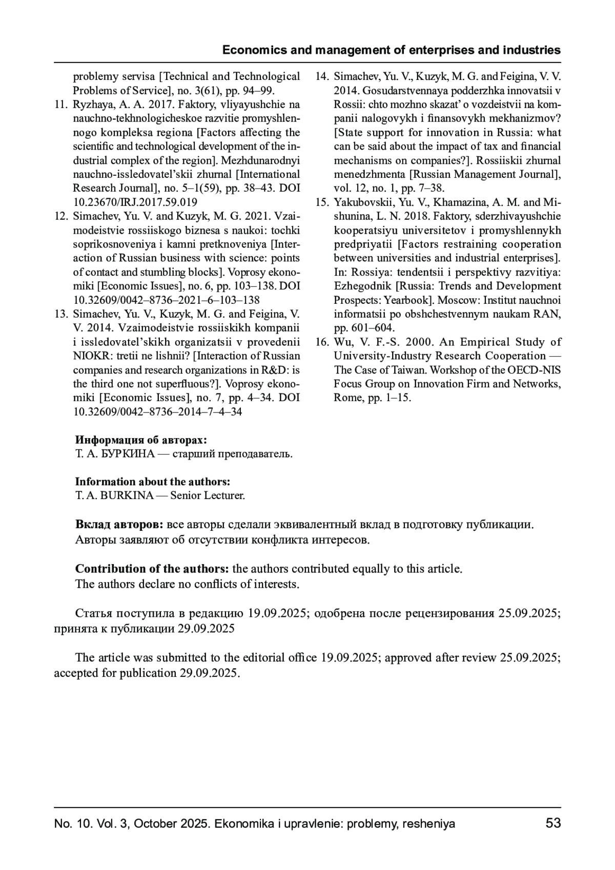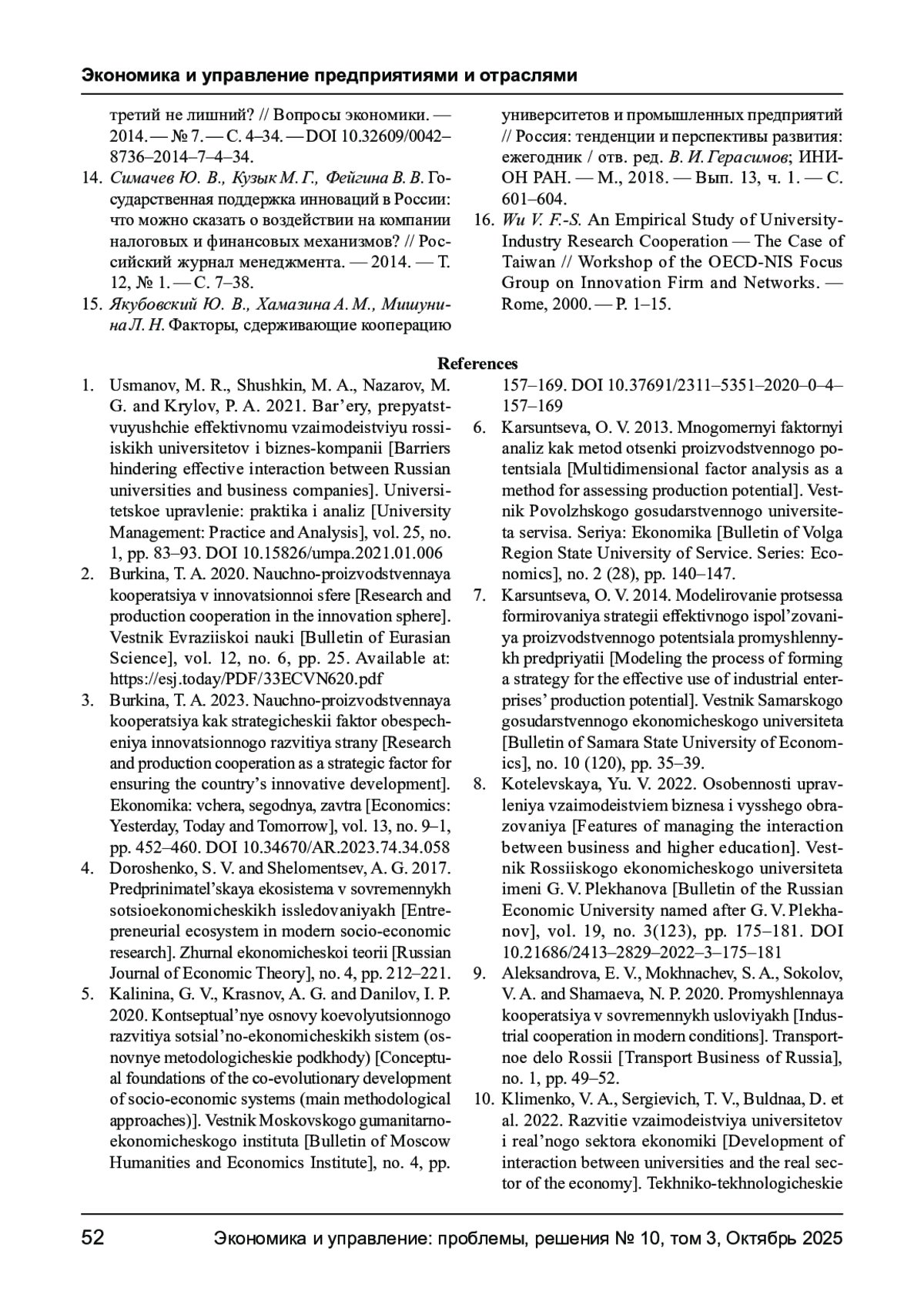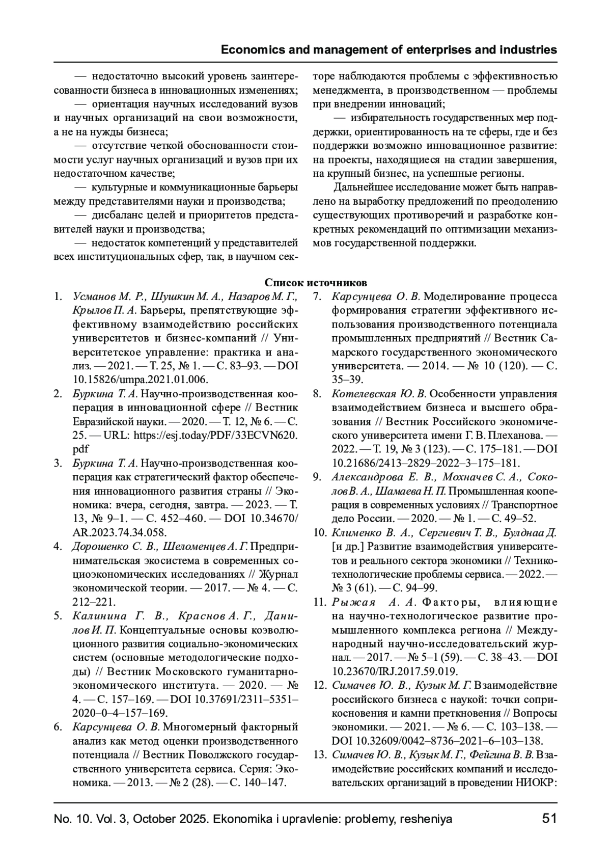 2. Буркина Т. А. Научно- производственная кооперация в инновационной сфере // Вестник Евразийской науки. - 2020. - Т. 12, № 6. - С. - URL: https://esj.today/PDF/33ECVN620.pdf. EDN: JBNGFB