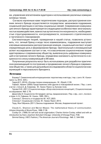 4. Гурова О.Ю. (2011) Социология моды: обзор классических концепций // Социологические исследования. №8. С.76.