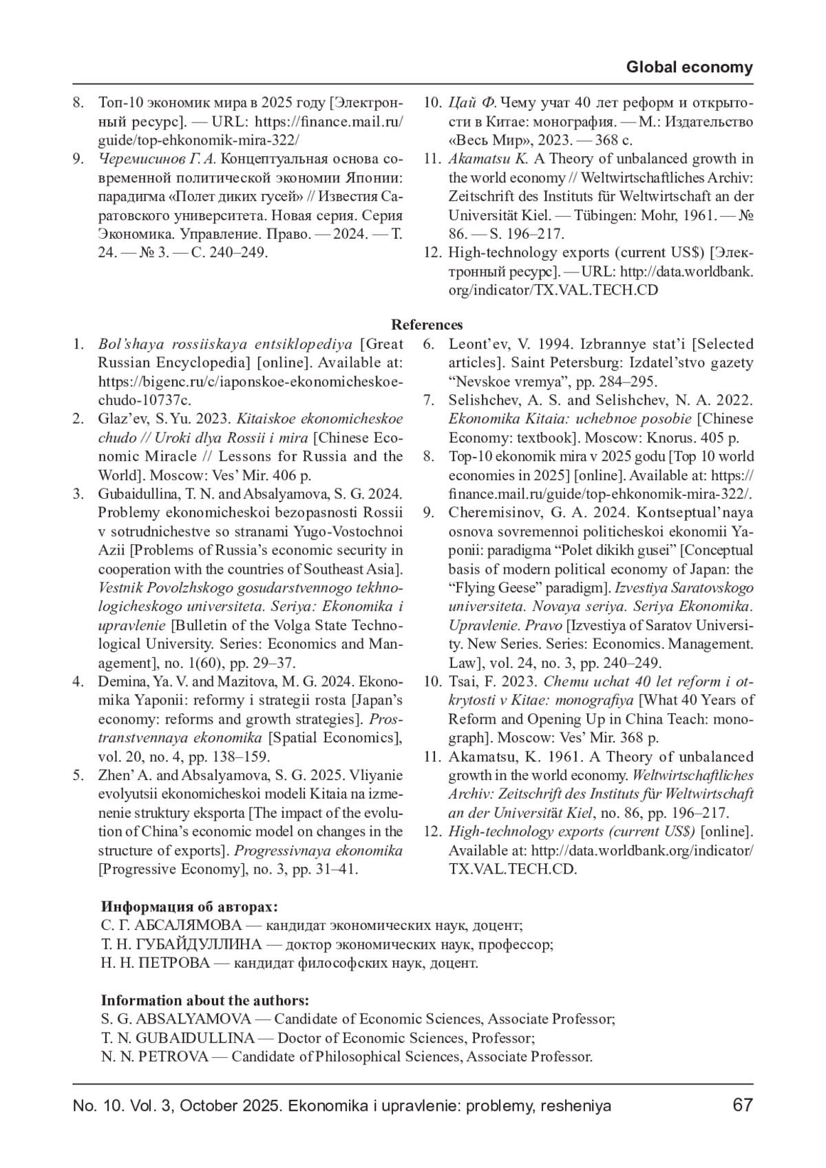8. Черемисинов Г. А. Концептуальная основа современной политической экономии Японии: парадигма “Полет диких гусей” // Известия Саратовского университета. Новая серия. Серия Экономика. Управление. Право. - 2024. - Т.24. - № 3. - С. 240-249. EDN: ABWKJM