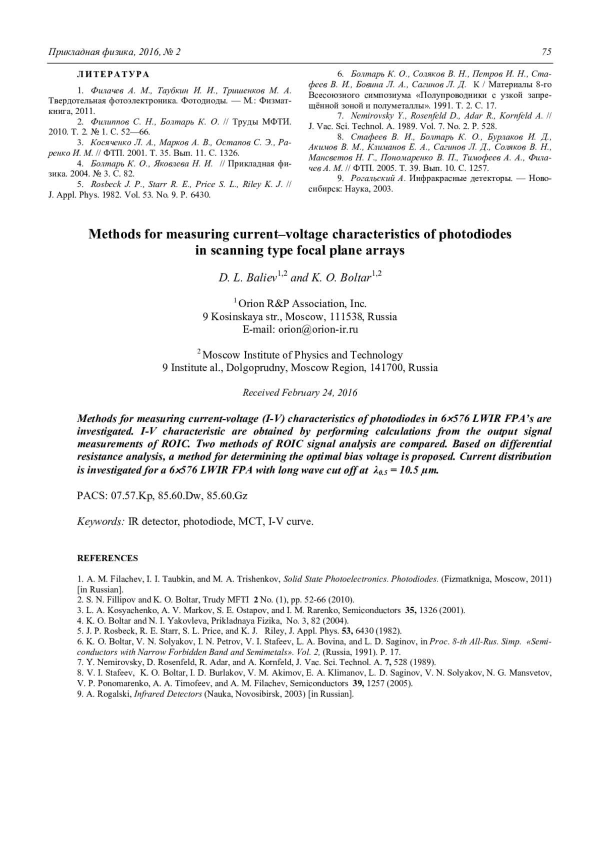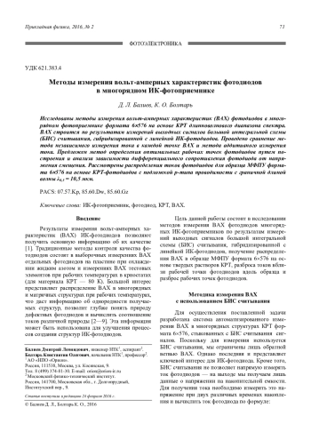 Балиев Д. Л., Болтарь К. О. Методы измерения вольт-амперных характеристик фотодиодов в многорядном ИК-фотоприемнике 71