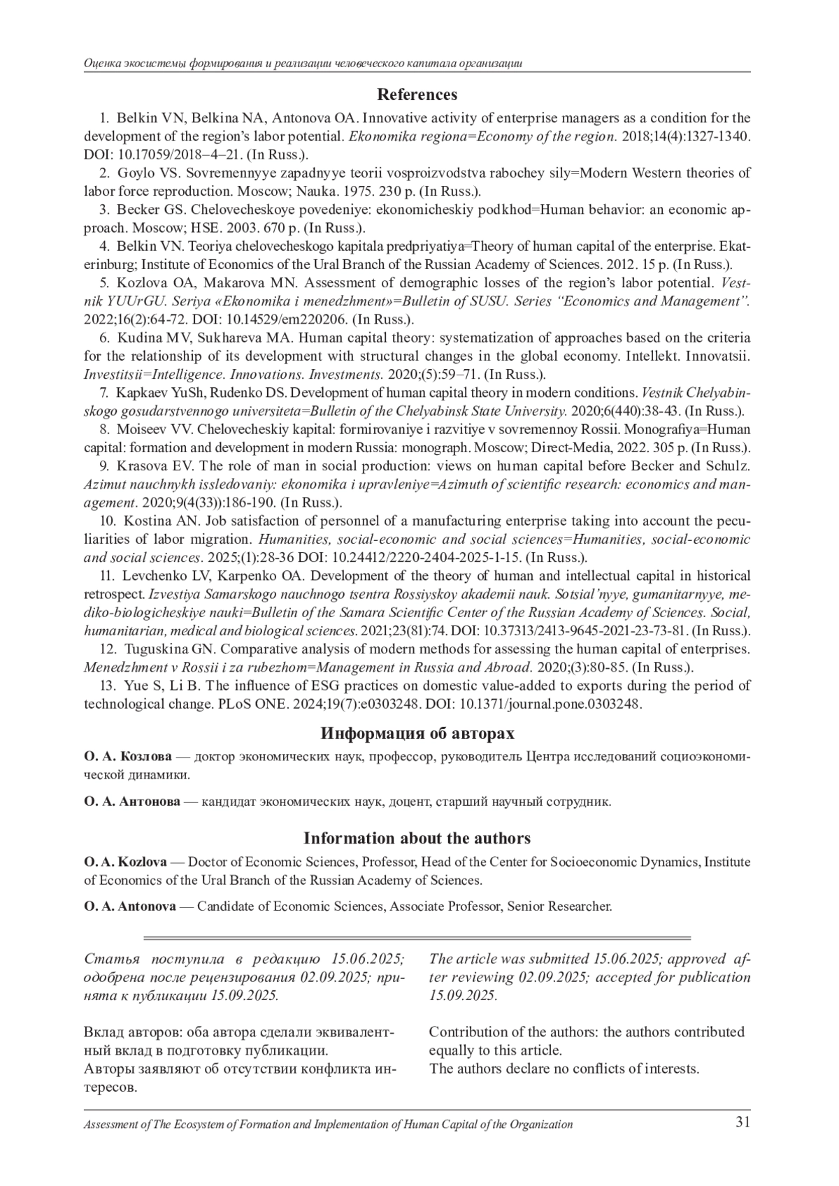 11. Левченко Л. В., Карпенко О. А. Развитие теории о человеческом и интеллектуальном капитале в исторической ретроспективе // Известия Самарского научного центра Российской академии наук. Социальные, гуманитарные, медико-биологические науки. 2021. Т. 23, № 81. С. 74. DOI: 10.37313/2413-9645-2021-23-73-81 EDN: QHGXAG