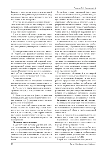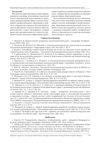 5. Гордеева Д. С., Саламатов А. А., Егорова А. А. Онтодидактическая концепция непрерывной эколого-экономической подготовки менеджеров производственной сферы: монография. Челябинск: Изд-во Челябинского государственного университета, 2024. 250 с. EDN: ARZOPS