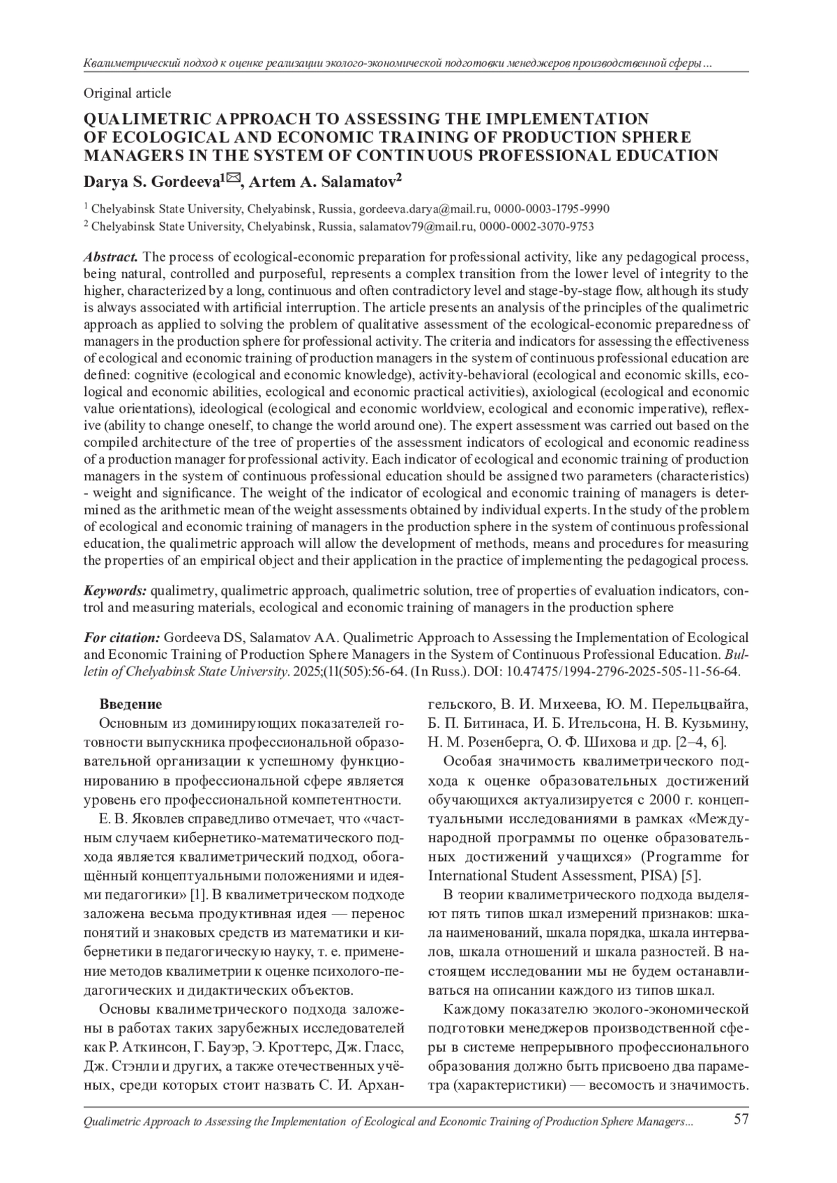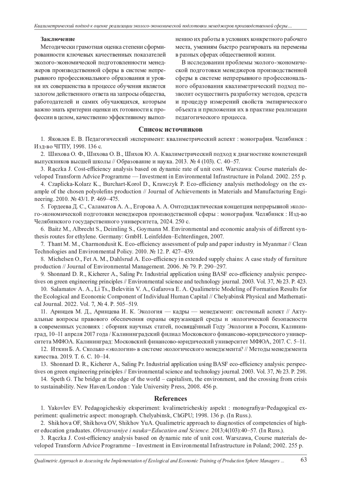 10. Salamatov А. А., Li Ts., Belevitin V. A., Gafarova E. A. Qualimetric Modeling of Formation Results for the Ecological and Economic Component of Individual Human Capital // Chelyabinsk Physical and Mathematical Journal. 2022. Vol. 7, № 4. P. 505-519. EDN: BIFNBB