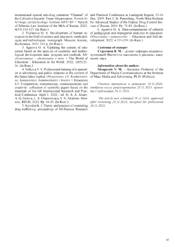 1. Струговец В. М. Информационное обеспечение международной специальной антинаркотической операции “Канал” Организации Договора о коллективной безопасности // Вестник Сибирского юридического института МВД РФ. 2023. № 4 (53). С. 110-117.