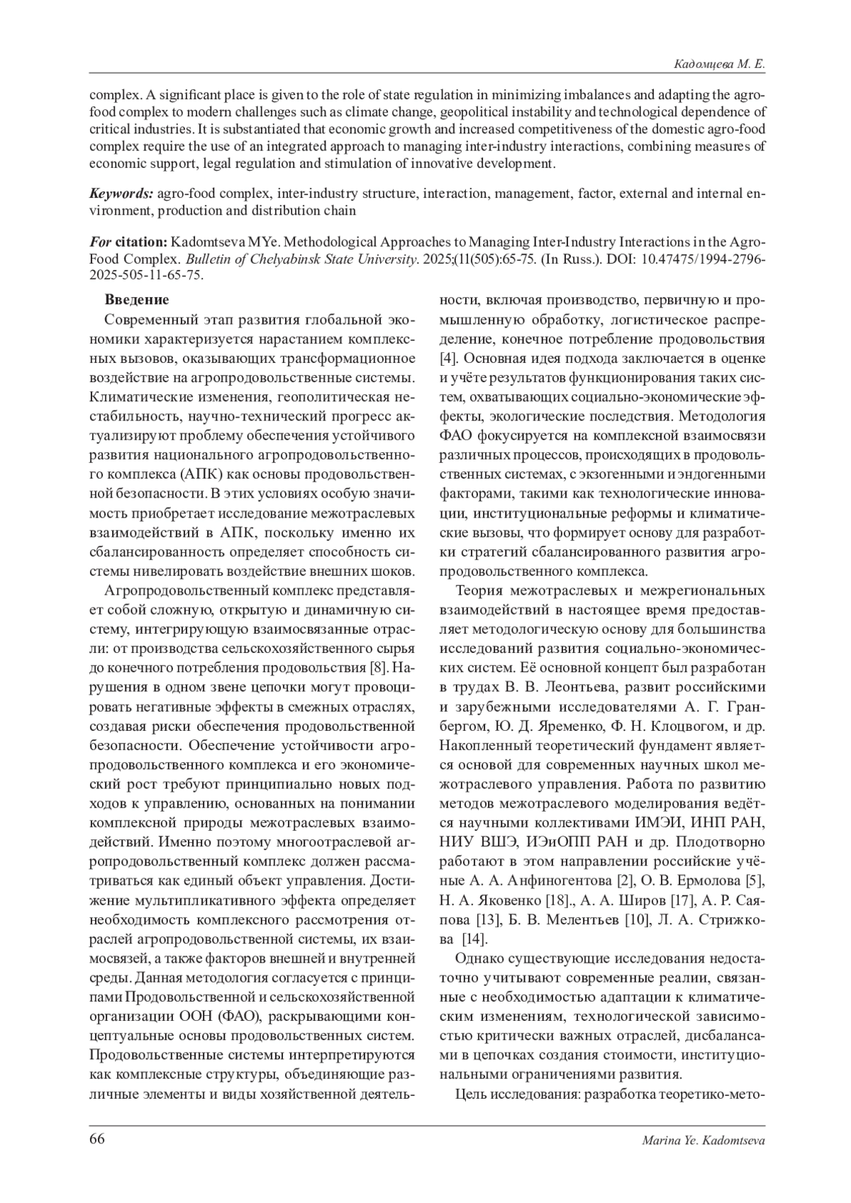 5. Ермолова О. В. Межотраслевое управление агропродовольственным комплексом: направления и результаты исследований // Региональные агросистемы: экономика и социология. 2022. № 4. С. 19-30. EDN: CQUJDG