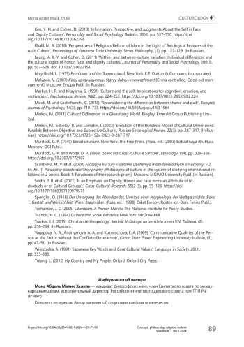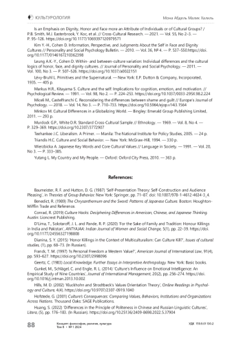 21. Is an Emphasis on Dignity, Honor and Face more an Attribute of Individuals or of Cultural Groups? / P.B. Smith, M.J. Easterbrook, Y. Koc, et al. // Cross-Cultural Research. - 2021. - Vol. 55, No 2-3. - P. 95-126. https://doi.org/10.1177/1069397120979571
