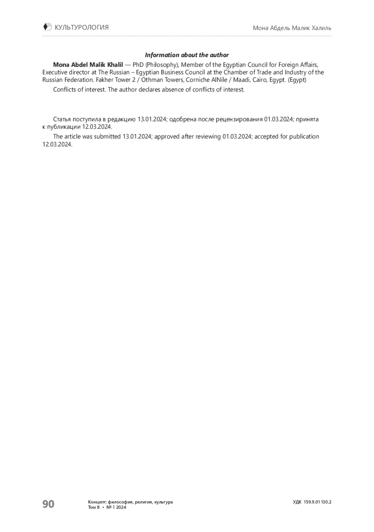 8. Халиль М.А. Перспективы религиозной реформы ислама в свете аксиологических особенностей арабской культуры // Вестник Воронежского государственного университета. Серия: Философия. - 2018. - № 1. - С. 122-129.