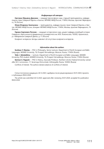 6. Бутакова А.А., Портнягина М.Д. Феномен «Северная идентичность» и его влияние на современные международные отношения // Санкт-Петербург и страны Северной Европы. - 2020. - № 22. - С. 318-327.