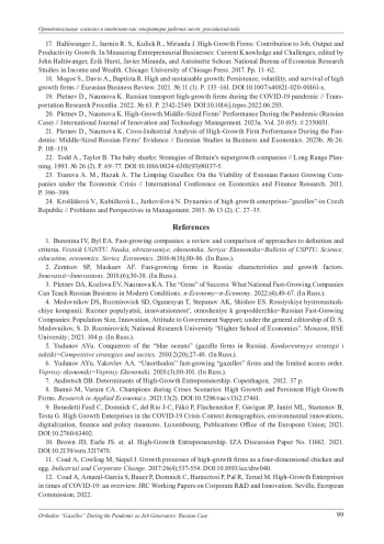 21. Pletnev D., Naumova K. Cross-Industrial Analysis of High-Growth Firm Performance During the Pandemic: Middle-Sized Russian Firms’ Evidence // Eurasian Studies in Business and Economics. 2023b. № 26. Р. 101-119.