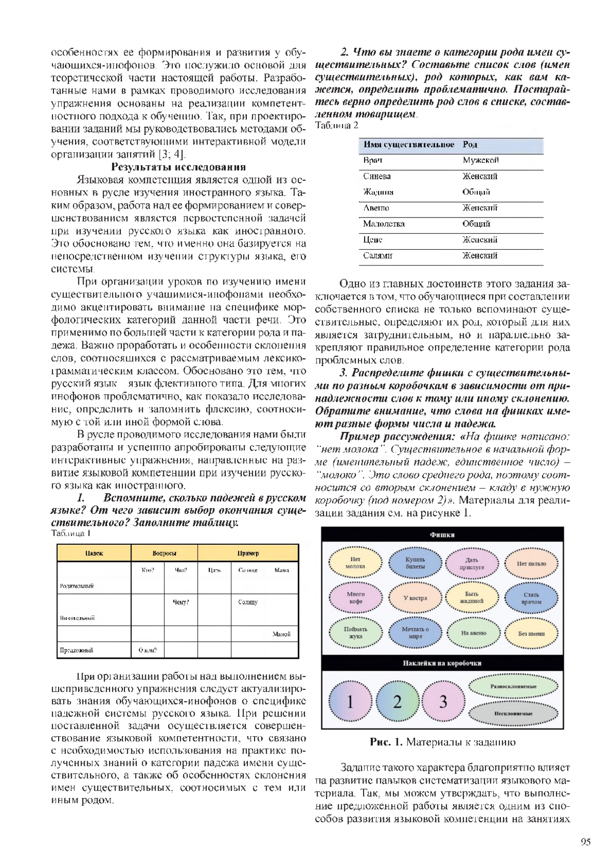 В рамках данной работы рассмотрены особенности организации и реализации образовательного процесса по изучению русского языка как иностранного в русле совершенствования языковой компетенции при рассмотрении морфологических категорий имени существительного. Исследование направлено на разработку и апробацию ряда интерактивных заданий по обозначенной теме. Использование данных заданий на уроках русского языка повышает их продуктивность и эффективность, способствуя совершенствованию языковой компетенции учащихся-инофонов при изучении таких сложных тем, как категория рода и склонение имен существительных. Результатом проводимого исследования является заключение о востребованности интерактивной модели организации образовательного процесса в аспекте совершенствования языковой компетенции при изучении морфологических категорий имени существительного.