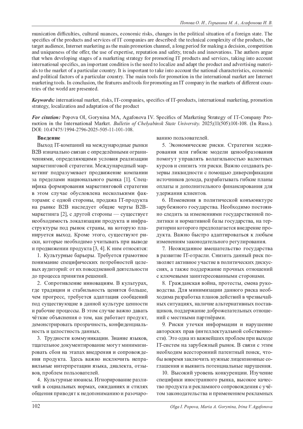 4. Полякова М. А., Илышева М. А. Возможности и риски для российских компаний при выходе на международные рынки // Российские регионы в фокусе перемен: сборник докладов XIX Международной конференции (Екатеринбург, 14-16 ноября 2024 г.). Екатеринбург: Изд-во Издательский Дом “Ажур”. 2025. C. 388-390. EDN: CENDPS
