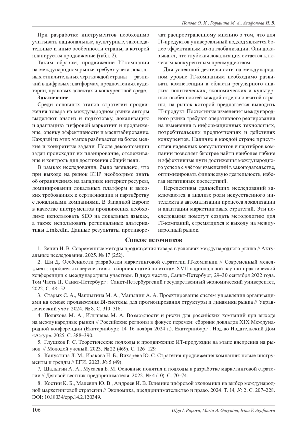 8. Костин К. Б., Малевич Ю. В., Андреев И. В. Влияние цифровой экономики на выбор международной маркетинговой стратегии // Экономика, предпринимательство и право. 2024. Т. 14, № 2. С. 207-228. DOI: 10.18334/epp.14.2.120349 EDN: BAJABB