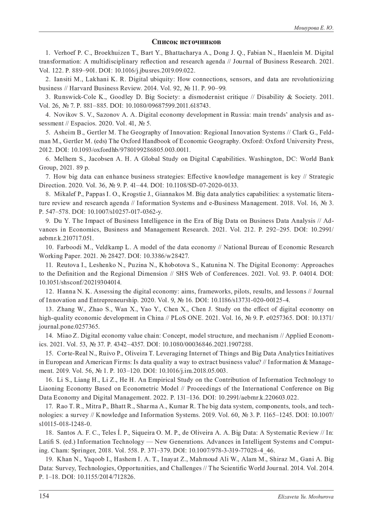 4. Novikov S. V., Sazonov A. A. Digital economy development in Russia: main trends’ analysis and assessment // Espacios. 2020. Vol. 41, № 5.