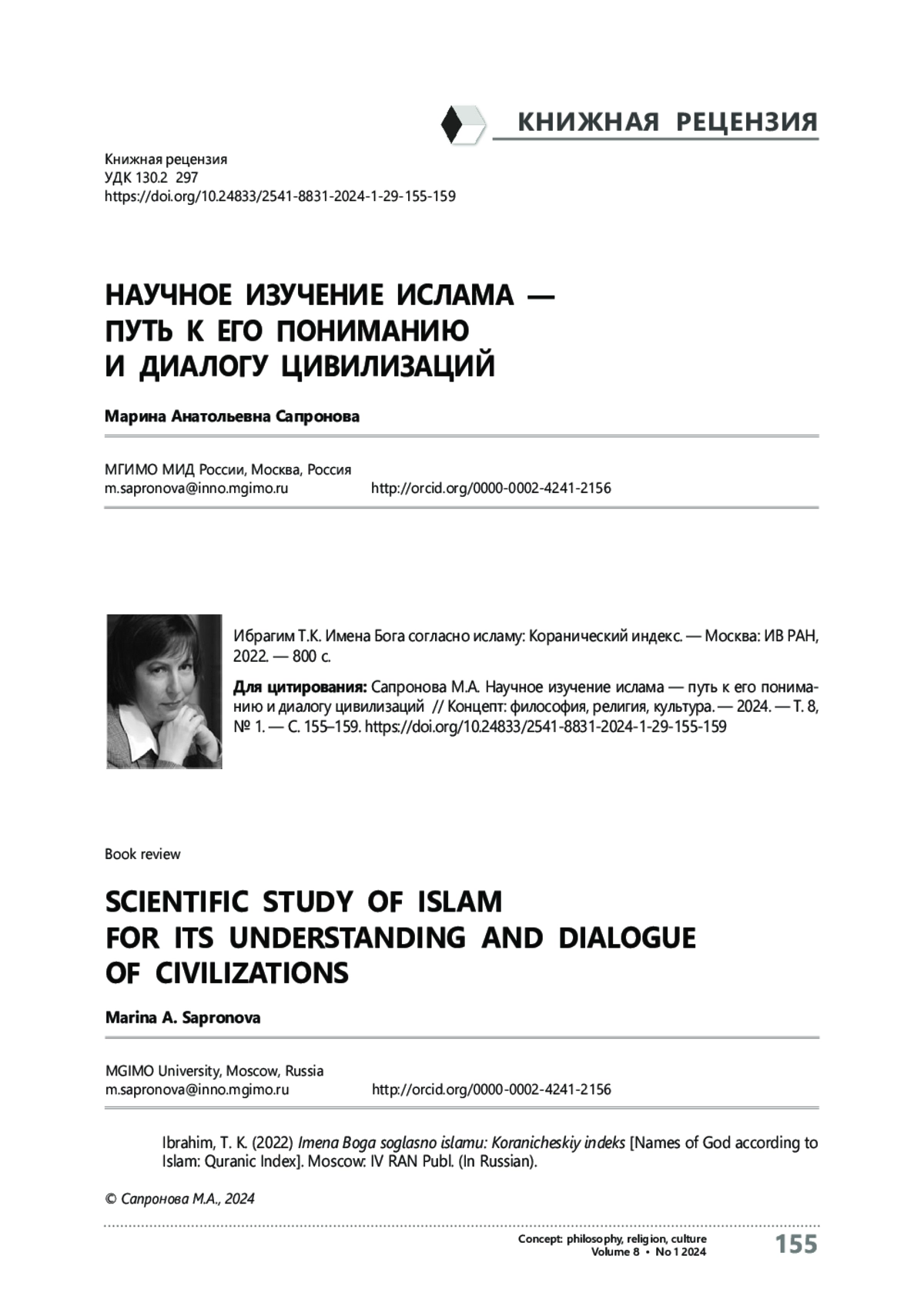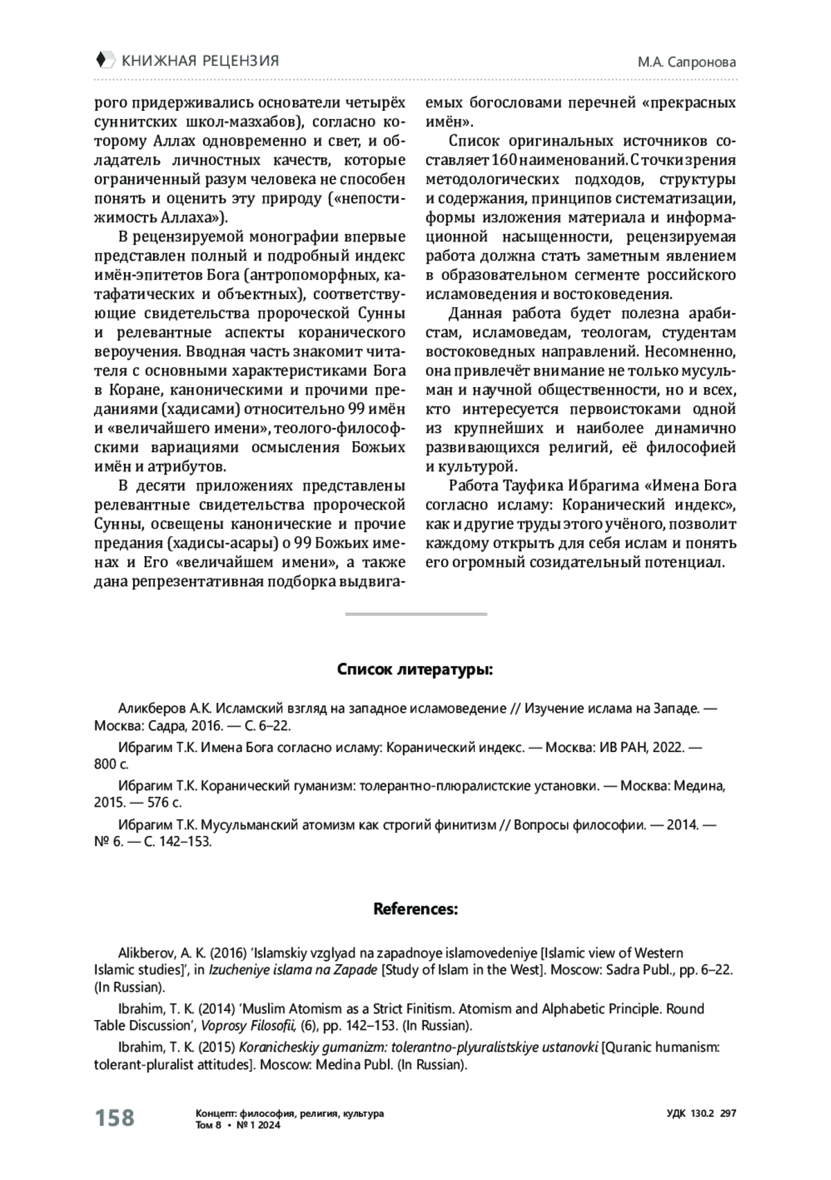 2. Ибрагим Т.K. Имена Бога согласно исламу: Коранический индекс. - Москва: ИВ РАН, 2022. - 800 с.