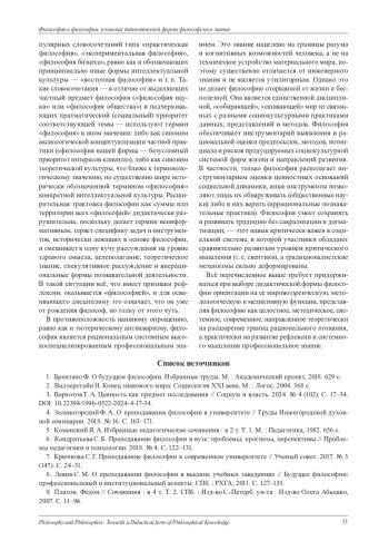 6. Кондратьева С. Б. Преподавание философии в вузе: проблемы, прогнозы, перспективы // Проблемы педагогики и психологии. 2018. № 4. С. 122-131.