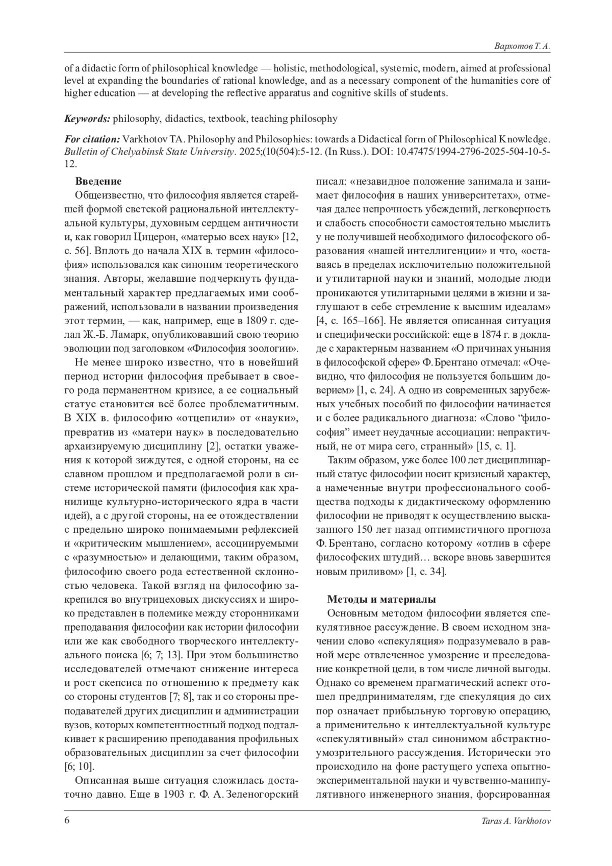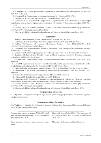 7. Крючкова С. Г. Преподавание философии в современном университете // Ученый совет. 2017. № 3 (147). С. 24-31.