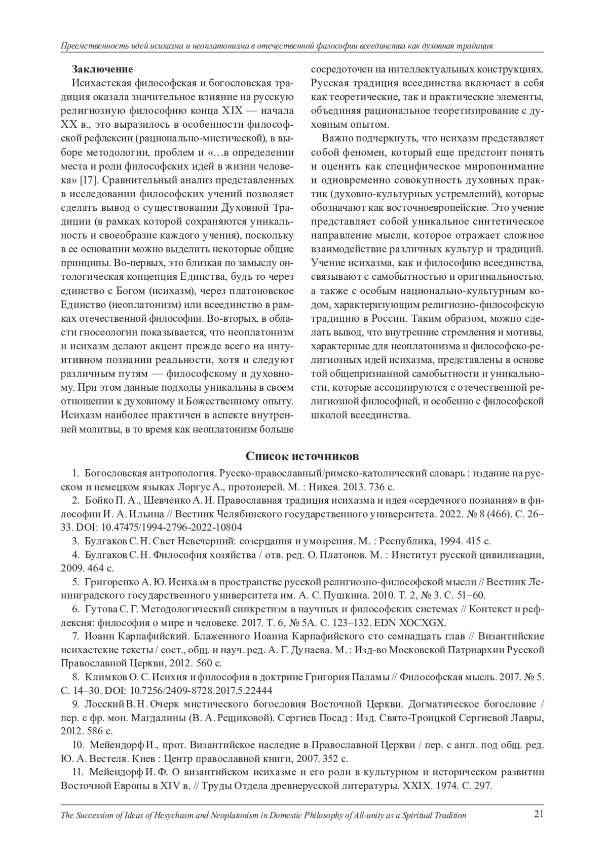2. Бойко П. А., Шевченко А. И. Православная традиция исихазма и идея “сердечного познания” в философии И. А. Ильина // Вестник Челябинского государственного университета. 2022. № 8 (466). С. 2633. DOI: 10.47475/1994-2796-2022-10804